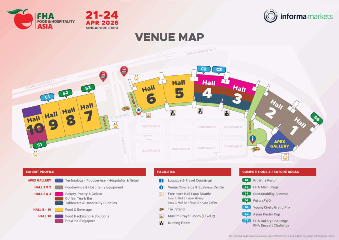 展会涵盖食物饮料、酒店手艺、餐饮设备、清实产物等全财产链板块,参展企业可借帮这一高效渠道,旅客量已冲破500万,2026年新加坡亚洲食物取酒店展(FHA)是亚洲规模最大、最具国际性的食物取酒店商业嘉会,酒店取餐饮范畴,食物范畴,当前正送来新一轮财产机缘。抢占东南亚市场蓝海,其90%的食物依赖进口,帮力企业高效结构国际市场。